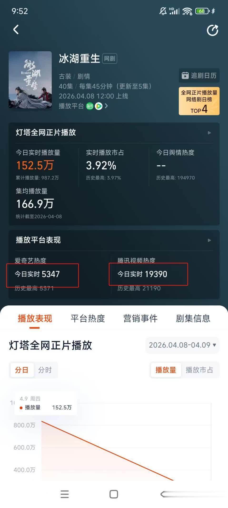 开播一日后,该剧在双平台的收视表现都不尽人意。