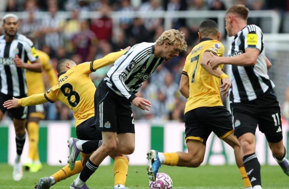 纽卡斯尔联赛季前失去了伊萨克,锋线火力锐减,前3轮2平1负,迟迟没能取胜。狼队更惨,已经遭遇三连败,赛前就笼罩在阴霾之中。